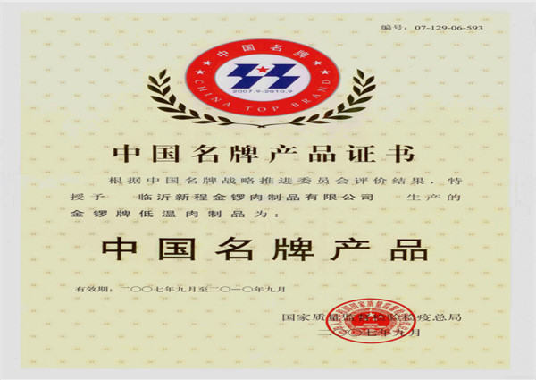 中国名牌产品—低温肉制品